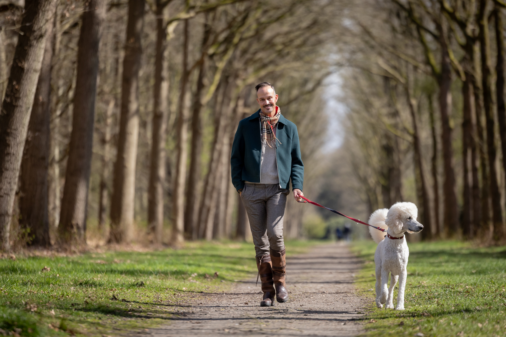Het huis dat ze vonden, past precies bij hoe Franck wil wonen. Geen grote tuin, maar een steiger direct aan de vaart, met middag- en avondzon. Als hij aan de voorkant van het huis de weg oversteekt, staat hij zo in het bos. Vaak schiet er dan een ree voorbij; ook na zeven jaar wonen blijft dat voor hem een cadeautje. Over de hele lengte van het lintdorp liggen de historische buitenplaatsen, met landhuizen, lanen en oude bomen. Franck wandelt er dagelijks met de hond en kent de verhalen achter de huizen. Hij geeft rondleidingen in Trompenburgh, het iconische landhuis in het water met een zeldzame 17e-eeuwse koepelzaal. “Het is echt een bakermat van historie,” zegt hij bijna trots.